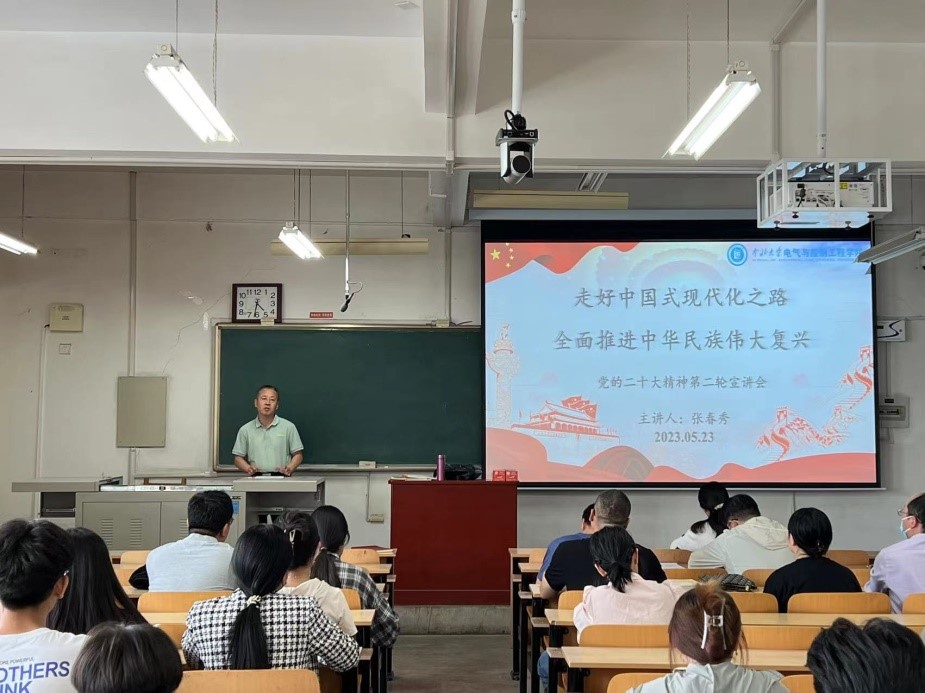 党委邀请校宣讲团成员马克思主义学院张春秀老师做题为《走好中国式现代化之路 全面推进中华民族伟大复兴》党的二十大精神第二轮集中宣讲。学院全体党员参加了此次宣讲活动,会议由学院党委书记赵正杰同志主持。