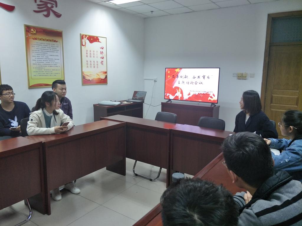 在本次会议过程中,支部党员同志紧紧围绕“改革创新、奋发有为”大讨论进行主题研讨,从身边的学生管理展开了讨论,针对生活、学习等各个方面提出了目前遇到的问题,并通过认真调研,对标一流,交流想法,积极讨论,提出了解决措施。随后,与会人员共同观看了 “习近平总书记在庆祝改革开放40周年大会上的讲话”视频。