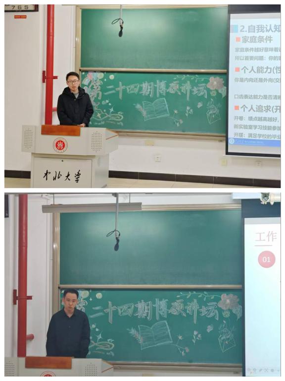 紧接着,贾辰玉同学聚焦于就业形势,深入解读了考研与就业规划。他条理清晰地阐述了各个方向的现状、实用建议与难点。他指出,如果选择考研,同学们需要学会在学习与生活之间找到平衡点,掌握时间管理技巧,学会应对压力;而如果选择就业,则需要明确职业目标,制定合理计划,不断提升自己的综合素质和专业技能,为今后的职业发展打下坚实基础。