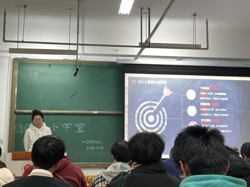 在15509H教室举办了第七期2024级论文学堂,本次学堂由班级朋辈导师郭睿面向24150141进行讲解。