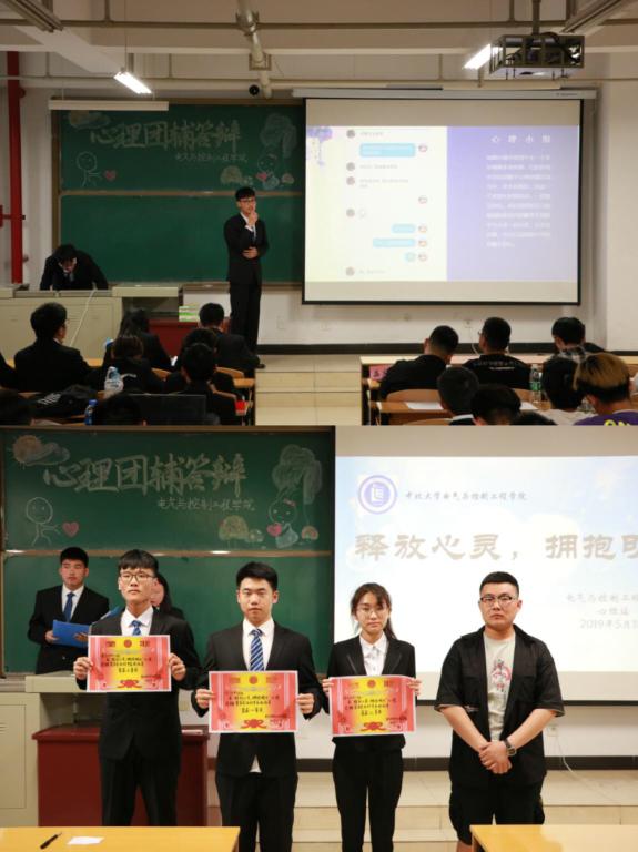 心理站于2019年5月18日晚7:00组织开展了“释放心灵,拥抱明天”心理团体辅导答辩活动,各班心理联络员代表班级进行了答辩。