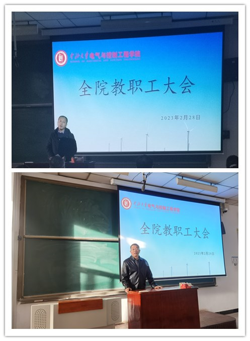 最后,院党委书记赵正杰肯定了学院2022年在各方面取得的成绩,指出了高层次人才引进、项目申报、重大成果等方面存在的不足,并从党建工作、工程教育认证、大类实践平台、教学和科研项目申报、高速飞车项目、博士和硕士点申报、青年教师培养、双创、学生考研与就业等方面提出了对学院和全体教师的规划与要求,强调了师德师风建设、意识形态、党风廉政建设等方面,希望广大教师能不断完善自我、提升自我,并更好地推动学院发展。同时,学院也会搭建更好地平台,出台相应政策来激励广大教师。