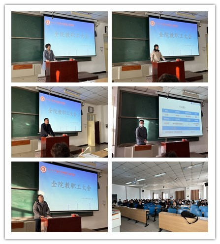 在11205H教室召开了全院教职工大会,全体院领导及教职工参加了会议。会议由院党委副书记杜苇主持。