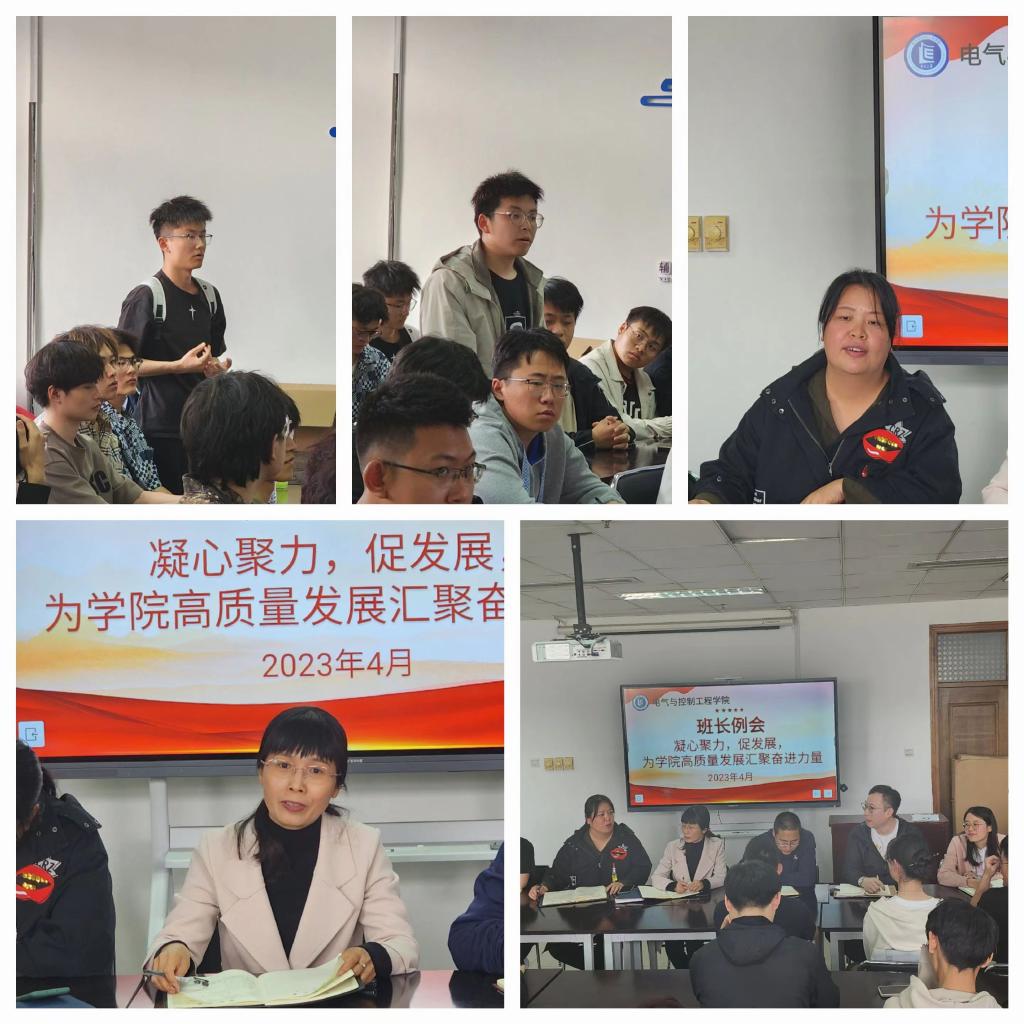 在主楼818会议室召开“凝心聚力,促发展,为学院高质量发展汇聚奋进力量”班长例会。院党委副书记兼副院长杜苇、团委书记郝国臣、学生科科长薛艳霞、辅导员老师和本科生研究生班长参加会议。学生科屈增老师主持会议。