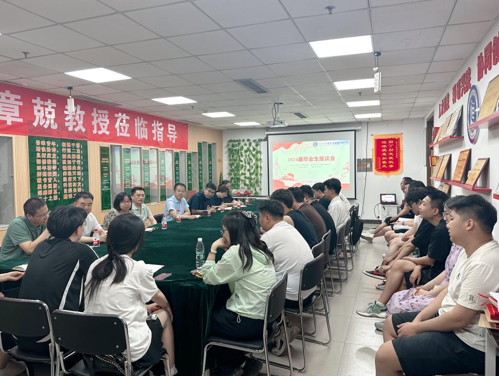 在619召开2024届毕业生座谈会。院党委书记赵正杰、副院长李晓、副院长邵星灵、交通工程系系主任贾建芳、电气工程系系主任赵俊梅、智能工程系系主任尤文斌、团委书记郝国臣、学生科科长薛艳霞与我院各班毕业生代表亲切交谈。本次座谈会由副院长李晓主持。