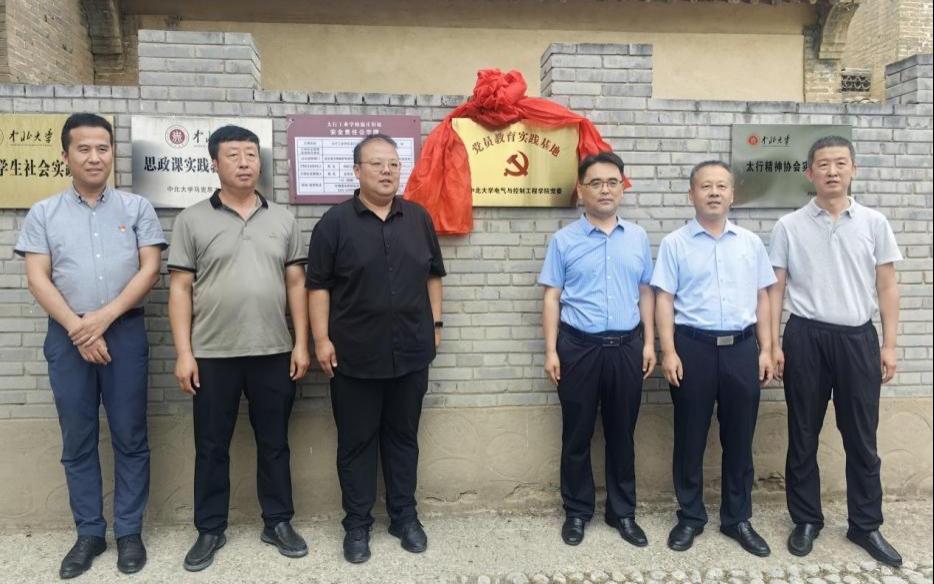 党委书记赵正杰、机电工程学院党委副书记兼副院长刘光以及蟠龙镇党委副书记、镇长崔路鹏、温庄村村支书杨树卫共同为党员教育实践基地进行揭牌。