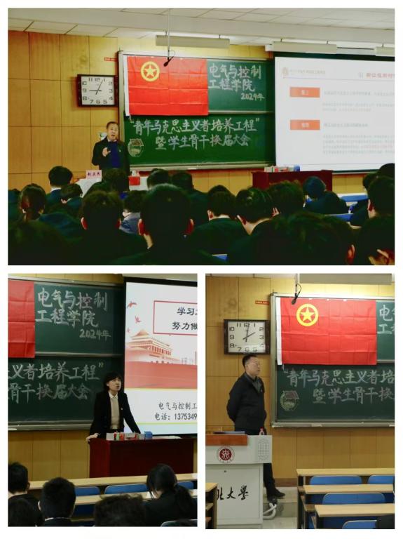 于2024年11月30日在11508H教室召开“青年马克思主义者培养工程”培训暨学生骨干换届大会。参加开班典礼的有院党委书记赵正杰、院党委副书记杜瑞平、团委副书记高瑞珍、学生辅导员屈增以及我院全体学生骨干,本次开班典礼由院团委书记郝国臣主持。