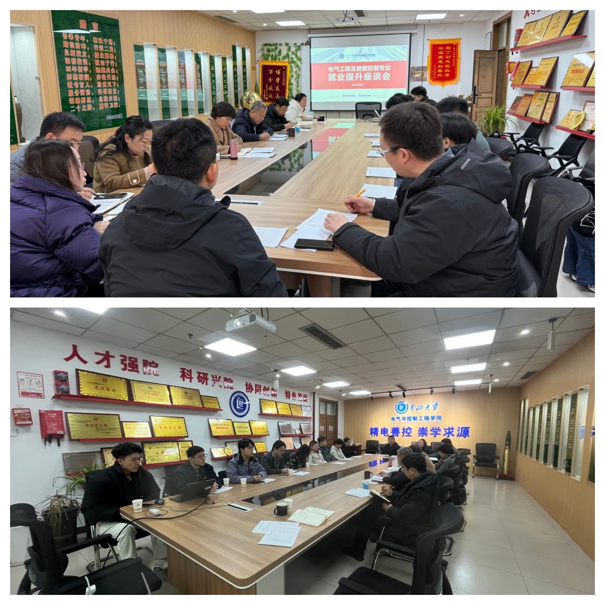 在学院619会议室专题召开电气工程与智能控制专业高质量就业提升座谈会。学院领导班子、系主任、全体辅导员、各年级班主任以及学生代表参加了本次会议。会议由学院党委副书记杜瑞平主持。