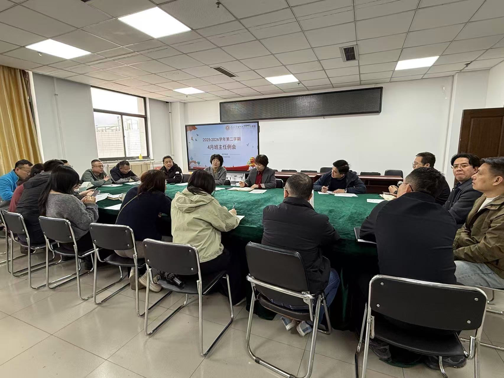 在学院621会议室组织召开4月份班主任工作会议。学院党委副书记杜瑞平、教学副院长李晓、全体辅导员、班主任参加会议。会议由杜书记主持。