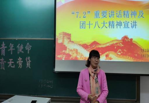 2018年10月25日上午九点 ,18150442班在11107H举办了以习近平总书记“7.2”重要讲话精神及团十八大精神为主题的班会,本次班会有幸邀请到了院党委副书记杜苇老师作为本次主题班会的主讲人, 18150442全体成员参加了本次学习。