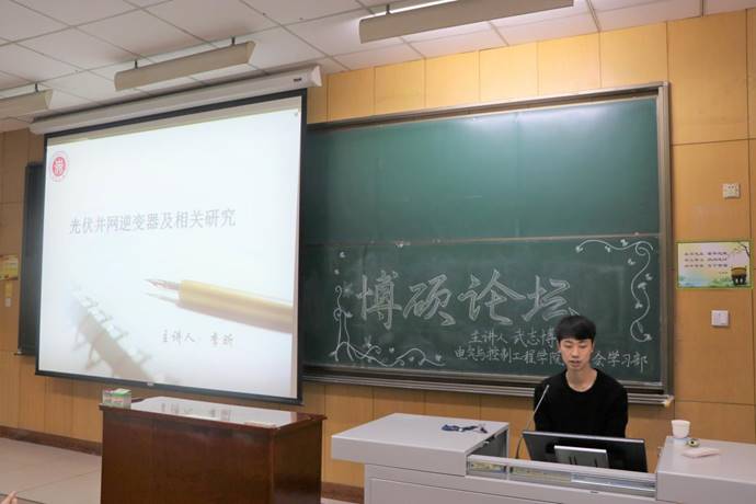 在本次博硕讲坛中,武志博学长为大家讲解了主二维转台并讲述了他的科研生活。李昕学长为大家介绍了光伏并网逆变器的相关研究。武志博学长将他的研究与本科生所学知识相结合,以通俗易懂的语言解释了深奥的专业知识。李昕学长则将时代背景与社会实际联系起来,向同学们介绍了有关电气传动与控制方面的知识。听完此次讲座,同学们受益匪浅,在互动环节积极发言,都希望两位主讲人能为自己答疑解惑。